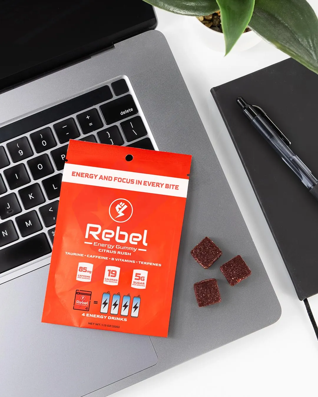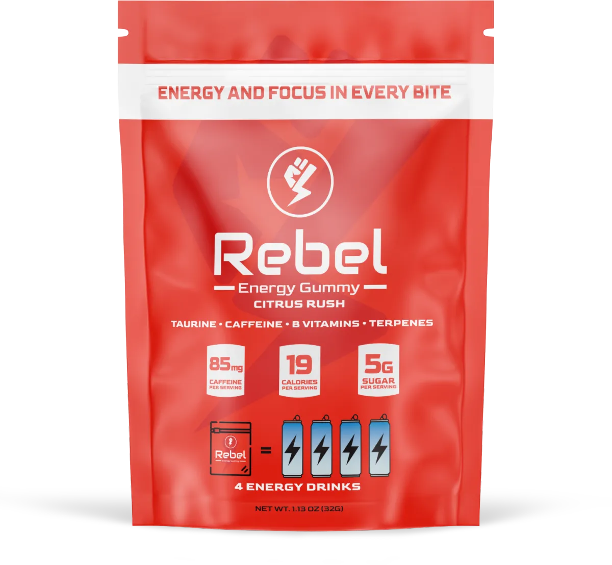 We believe that energy shouldn’t come with a crash, and focus shouldn’t be fleeting. That’s why we created Rebel Energy Gummy, combining caffeine, taurine, B vitamins, and terpenes to deliver long-lasting energy and bright-eyed focus — in a convenient, pocket-sized gummy that’s perfect for those who live life on the go.