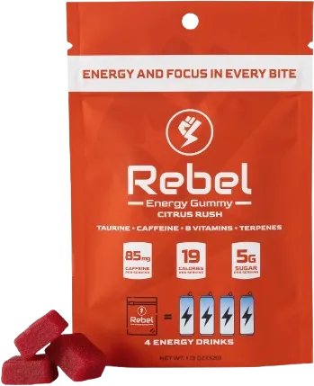 Rebel Energy Gummy is your go-to for on-the-go energy. Packed with a unique blend of caffeine, taurine, B vitamins, and terpenes for a quick boost or all-day stamina. Whether heading to the gym, toughing out a packed workday, or partying into the night, Rebel Energy Gummy delivers powerful, portable, personalized energy and focus when you need it, wherever life takes you.